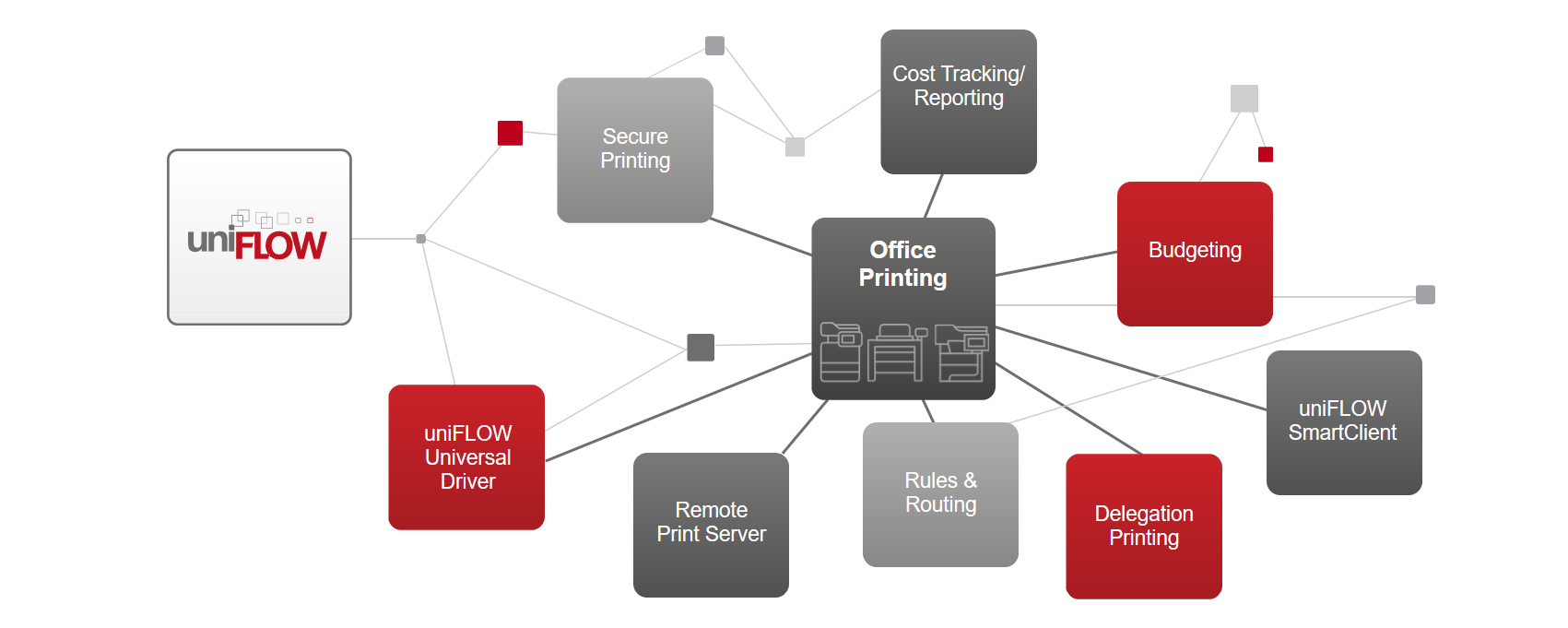 uniFLOW™ technology is designed to help you get the most out of your multifunction device. uniFLOW™ is the one-platform software for all printing, scanning and device management. One of the key benefits of uniFLOW™ is its versatility, it can be built around your business and the way that you need to work whether it’s a small company or large corporation.